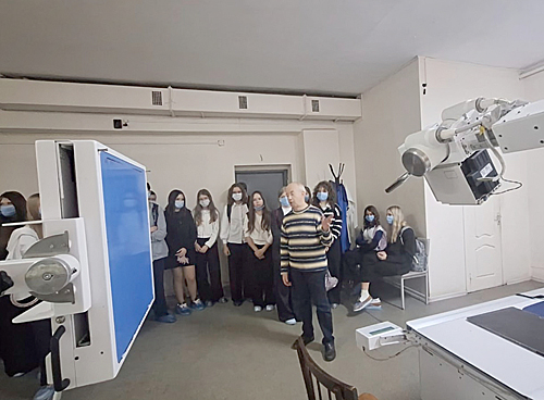 После чего, ребята посетили клиническую лабораторию ЦРБ, экскурсию по которой для них провела ее заведующая И.В. Эль. С отделением лучевой диагностики, его оборудованием, спецификой работы, требованиям к специалистам их познакомил В.В. Кадетов. С назначением отделения функциональной диагностики, его возможностями и оборудованием их познакомила ее заведующая Е.В. Серикова. И в завершение экскурсии В.В. Кадетов рассказал учащимся о роли врачей и среднего медицинского персонала в лечебном процессе, о значении отношений врач — пациент и факторе «призвания» в этой благородной и такой востребованной профессии. И конечно, предложил им задуматься о том, чтобы в будущем специализироваться в области медицины. Надо сказать, что уже сейчас часть школьников готова последовать в медицинские учебные заведения.