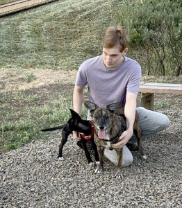 Волонтер Егор Маракаев с Тасей и Рокси – собаками, которые нашли свой дом в семье Маракаевых. / ФОТО из архива приюта «Сохраняя жизни»