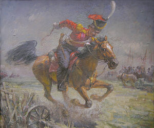 На межрегиональной выставке «Юг России – XIII» художник представил конный портрет М. Платова «Слава Платову герою…».