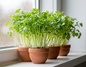 Для этого в контейнеры высевают базилик, укроп, кинзу или мяту. С помощью лампы или на светлом окне уже через месяц можно добавлять в блюда свою свежую пряную зелень.