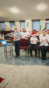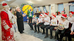 Во время елочки с детьми общались Дед Мороз и Снегурочка, водили с ними хороводы, а после того как к всеобщему удовольствию выступил коллектив «Мы вместе» Аксайской районной общественной организации родителей и детей инвалидов (АРООРДИ) с шумовым инклюзивным оркестр ом (руководитель Е.В. Зинченко), исполнившим целый ряд песен из музыкальных пьес, дети получили новогодние подарки от организаторов и у строителей праздника.