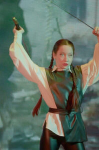 Начали искать возможности выезда. Сначала было трудно, но в сентябре 2023 года все сложилось: их просто прикрепили к фронтовой бригаде, которая под эгидой Южного военного округа уже выезжала к линии боевого соприкосновения. Год работали в составе «чужой» бригады, а потом появилась «Ева» (Женя Чечина). Так возникла фронтовая творческая бригада артистов-добровольцев «Голоса фронта. Регион 61».
