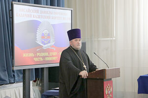 Духовный наставник нашего корпуса о. Александр Дубовик поздравил начальника корпуса и всех присутствующих с праздником, пожелал всем успехов и милости Божией. И в связи с памятной и скорбной датой кровавых событий 24 января 1919 года, дне памяти и скорби в истории казачества предложил почтить память тех, кто верой и правдой служил российскому государству минутой молчания.