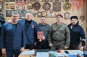 Еще один наш земляк, казак хуторского казачьего общества «Островский» Владимир Михайлович Бастрюков был награжден грамотой главы Администрации Аксайского района, за активное участие в оказании помощи участникам специальной военной операции. Грамоту Владимиру Михайловичу вручила заместитель главы Администрации Аксайского района по социальным вопросам Ольга Николаевна Пушкина. В.М. Бастрюков изготавливает для фронта проходные печки, ремонтирует редукторы на военные КамАЗы и активно собирает гуманитарную помощь для наших бойцов.
