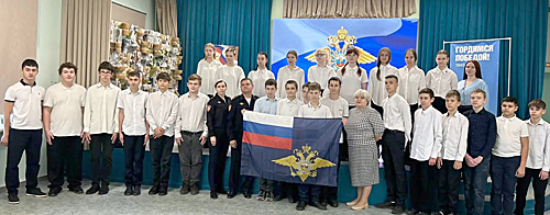 В этот день к нам пришли представители органов МВД, и классу был торжественно передан флаг Министерства внутренних дел Российской Федерации, символизирующий принадлежность к правоохранительной системе. Сейчас он находится в нашем классе, в классном уголке. Дети зачитывали клятву – быть примером для других учеников, ответственно относиться к обязанностям, нести дежурства, хорошо учиться. Мероприятие, несомненно, усилило эффект понимания среди учащихся, что «Полицейский класс» существует не просто «для галочки». Ведь этот особый проект направлен на формирование патриотического сознания, развитие чувства ответственности и уважения к профессии сотрудника правоохранительных органов среди подростков.