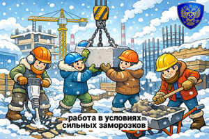 Режим работы: Продолжительность непрерывной работы на холоде и количество перерывов зависят от температуры воздуха и скорости ветра. Нормативы установлены в Методических рекомендациях МР 2.2.7.2129-06. При экстремально низких температурах (например, ниже -30°C) планирование тяжелых физических работ не рекомендуется.