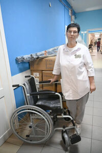 Для бойцов с ограниченными возможностями передвижения передали десять инвалидных колясок и 20 пар костылей. Помощь в приобретении оборудования оказало АО «ССРЗ «Мидель».