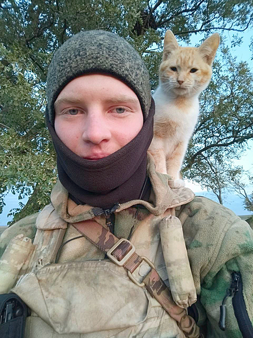 Есть у него и живой талисман. На службе он завел себе рыжую кошку Маруську. Она, как настоящая напарница, ходит с ним на дежурства, а ночами спит у него в капюшоне.