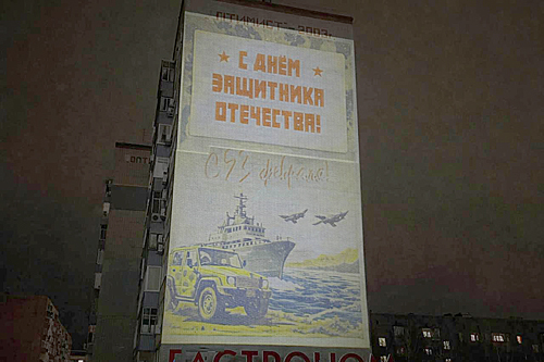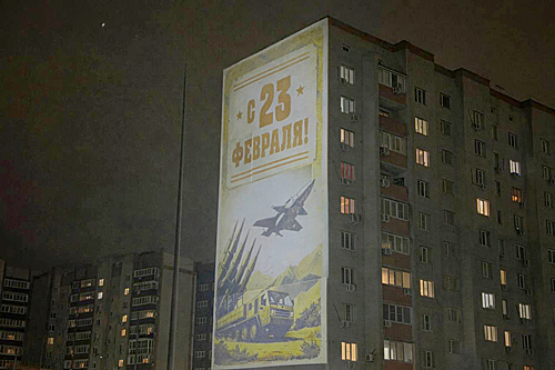 Новость в рубрике: Даты, НовостиВ городе Аксае Ростовской области накануне Дня защитника Отечества на стенах четырех многоквартирных домов появились праздничные проекции. Идея украсить фасады таким способом принадлежит местным властям и уже второй год реализуется в городе, рассказал ДОМОСТРОЙДОН.РУ начальник МКУ «Благоустройство и ЖКХ» Аксайского городского поселения Евгений Постарнак.