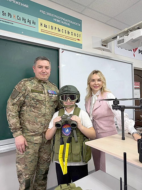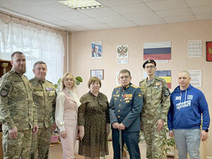 Ветераны поделились с ребятами историями из своей жизни и боевым опытом, а так же представили интерактивную выставку из шевронов, средств защиты, боевых трофеев, макета боевого БПЛА, используемого Вооруженными силами России, а также боевых атрибутов Донского казачества – шашки, нагайки, знамени.