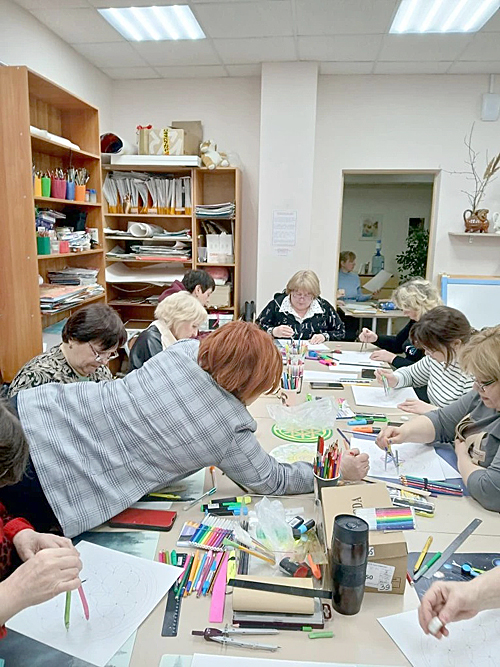 В одной из аудиторий клинический психолог Елена Вячеславовна Березуцкая провела мастер-класс по рисованию гармонизирующей фигуры «Цветок жизни». Участники, многие из которых не брали в руки циркуль более 40 лет, осваивали сакральную геометрию, сопровождая процесс настройкой на положительные эмоции.