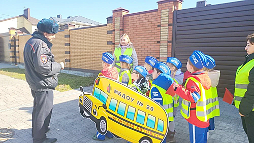 Новость в рубрике: Дорога и мыНе только в теории, но и на практике воспитанников детского сада № 20 «Лилия» в поселке Янтарный Аксайского района познакомили с основами безопасного поведения на автомобильных дорогах в ходе акции «Шагающий автобус». Мероприятие было направлено на профилактику детского травматизма и закрепление правил дорожного движения.
