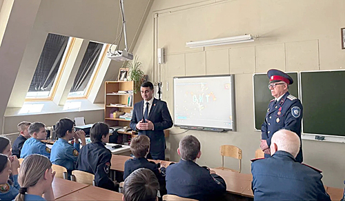 Е.Н. Камфарин обсудил важные вопросы с учениками казачьего класса школы № 1 г. Аксая