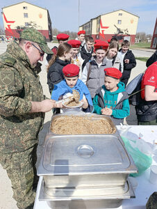 Более 150 аксайских юнармейцев окунулись в армейскую жизнь: посетили парк «Патриот» и музейную комнату, познакомились с бытом военнослужащих, играли в лазертаг, соревновались в перетягивании каната, метали саперные лопаты, стали участниками показательного выступления подавления огневой позиции противника и эвакуации раненого, обедали вкуснейшей солдатской кашей.