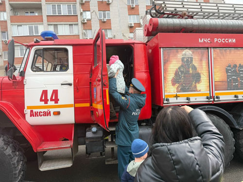 Малышам в аксайском детсаду рассказали, как действовать при пожаре, и познакомили с профессией пожарного