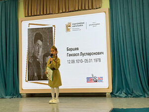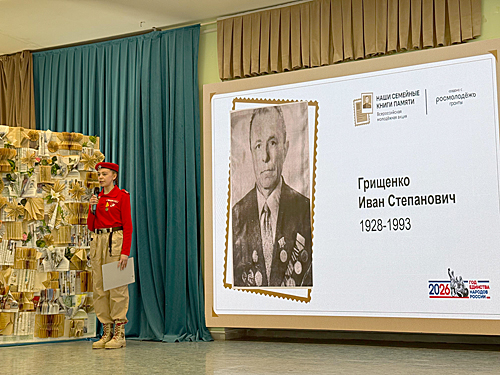 Каждый участник подготовил одноминутное публичное выступление с рассказом о своих родственниках, принявших участие в войне, которое сопровождалось слайдом с отображением их фотографий, имен и лет жизни.