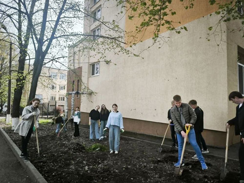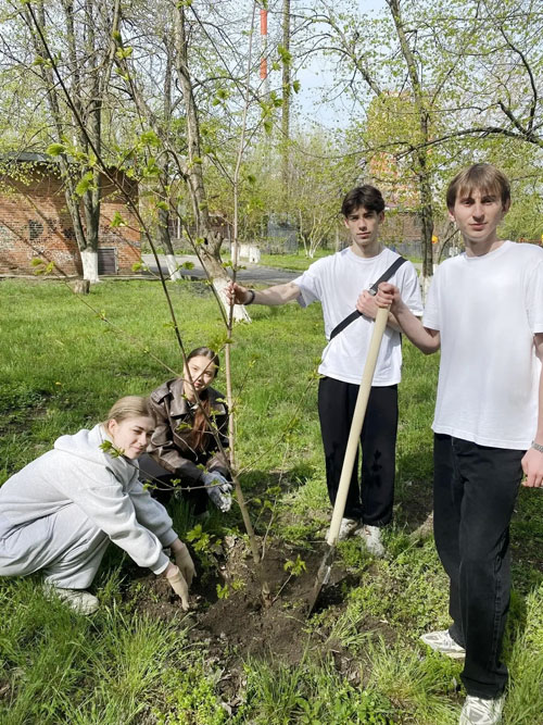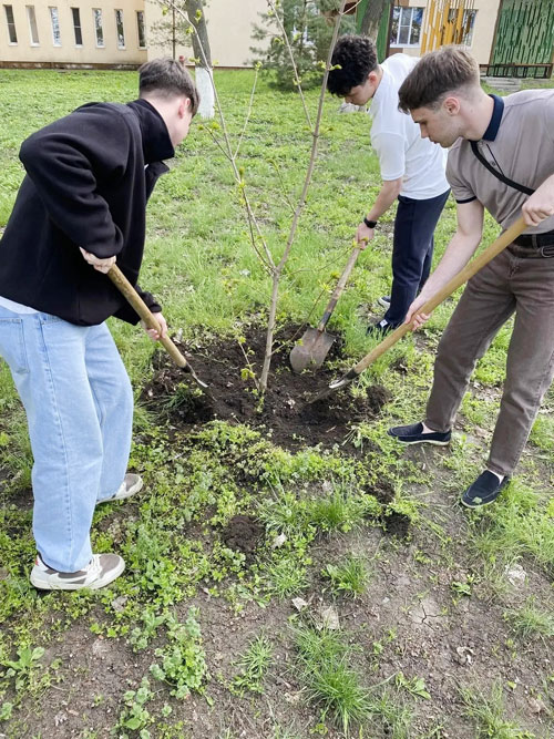 Ученики 11 класса высадили деревья на территории школы, а учащиеся с 5 по 11 классы занялись благоустройством пришкольной зеленой зоны.