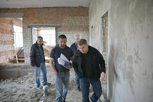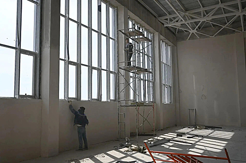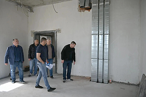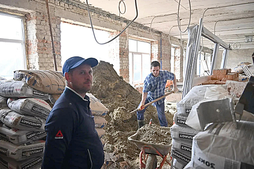 Константин Сергеевич поручил обратить особое внимание на необходимость оперативного за- вершения фасадных работ – цоколя и козырьков, а также выполнение работ по монтажу потолков в актовом зале.