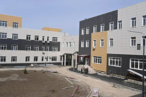 На объекте строящейся школы завершаются работы по оштукатуриванию подпорной стенки, завершены работы по монтажу ВРУ блока Г, завершается устройство отмостки и работы по благоустройству внутреннего двора, в здании продолжаются работы по заливке наливных полов и укладке линолеума, устанавливаются защитные экраны радиаторов и труб отопления, устанавливаются ограждения (перила) на пандусе и входных группах школы, в спортивном зале ведется окраска стен, на территории школы установлены системы видеонаблюдения, ведется подготовительная работа к засеиванию газона.