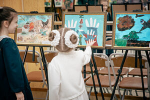 У Милены на выставке две работы. На одной она нарисовала младшего брата Эдварда, на другой – себя. И не просто портреты, а то, как она видит их будущее: брат – солдат, а сама Милена – медицинская сестра.