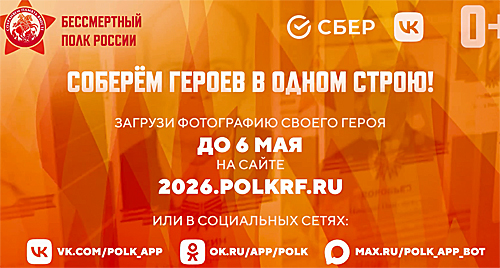 Чтобы принять участие в акции необходимо до 6 мая подать заявку на официальном сайте «Бессмертного полка» 2026.polkrf.ru или через мини-приложения в соцсетях: